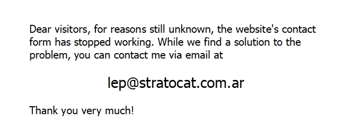StratoCat is a non-profit, educational and informative website created, developed and programmed by Luis E. Pacheco. It is based on an idea first conceived by the author in 2001 and is online since September 17th, 2005.