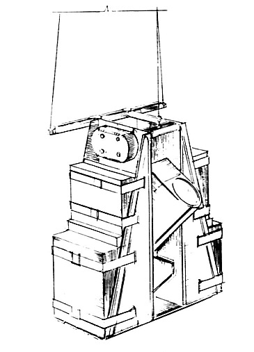 Vertical-axis torque was generated by two motor-driven wheels spinning at 12,000 rpm. Mounted on a common axis within a hinged horizontal shaft, they produced precession torque when the hinge bent in response to an amplified signal from the north-seeking gyro, introducing a vertical angular momentum component. Energy consumption for this payload rotation was minimalonly one-eighth watt-second per radian.