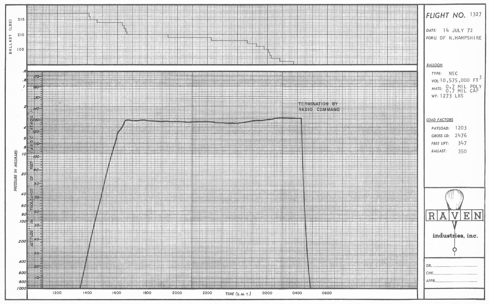 Balloon launched on: 7/14/1972 at 13:31 UTC