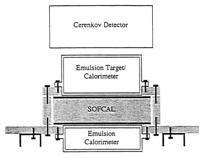 In the image at left, can be seen a scheme of the instrument (click to enlarge). SOFCAL included four vertically stacked chambers. The top chamber was a Cerenkov counter built with a Teflon radiator and photomultiplier tubes to measure the charge of incoming particles. Below this was an emulsion chamber divided into three sections: the primary section for charge identification, the target section to increase the likelihood of particle interactions, and an emulsion calorimeter that used x-ray films and emulsions to record electromagnetic cascades. Underneath this chamber was the Sci-Fi calorimeter, composed of multiple layers of lead interleaved with orthogonal layers of scintillating optical fibers, which captured detailed images of cascade development using image-intensified CCDs. The final chamber, another emulsion calorimeter, recorded high-energy cascades that penetrated the full depth of the instrument.