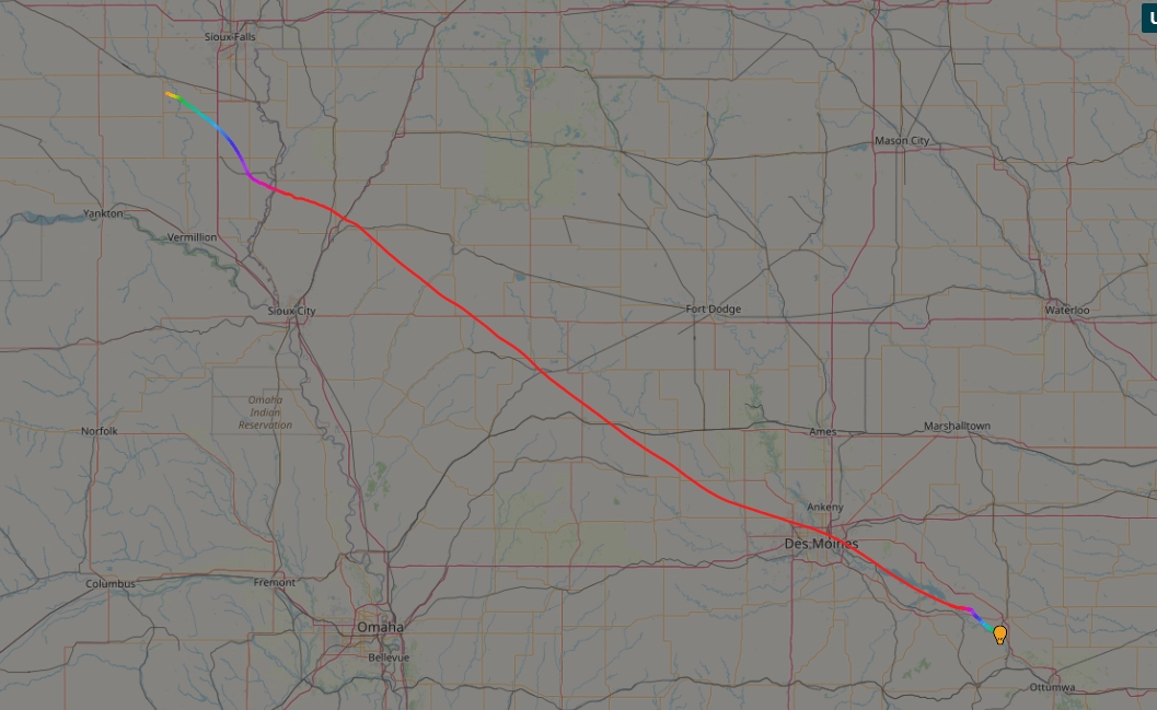 Landing site: Near Ottumwa, Iowa, US